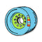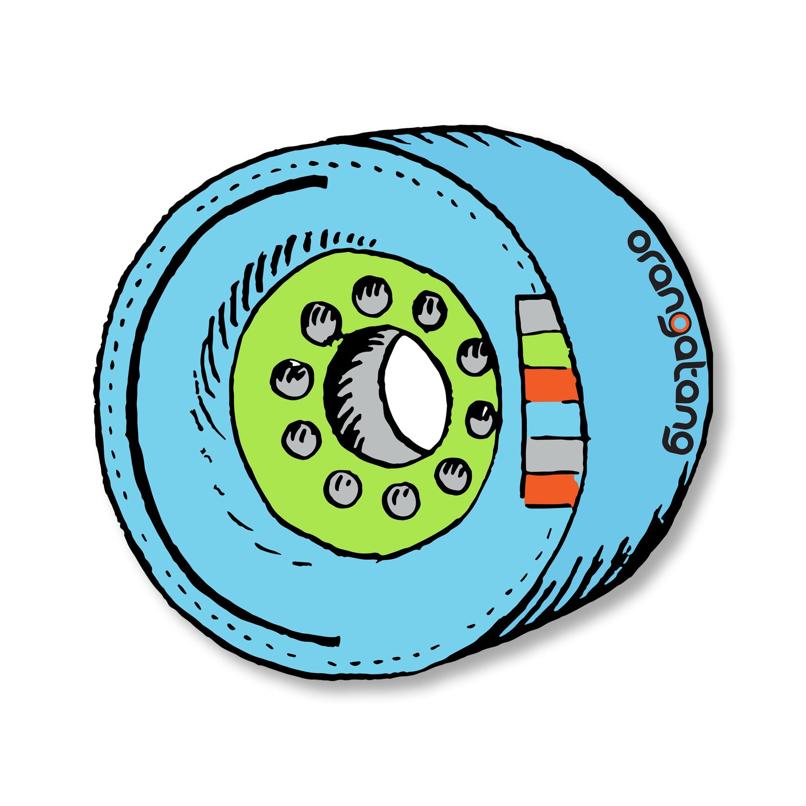 Illustration of a skateboard wheel in blue and green colors.