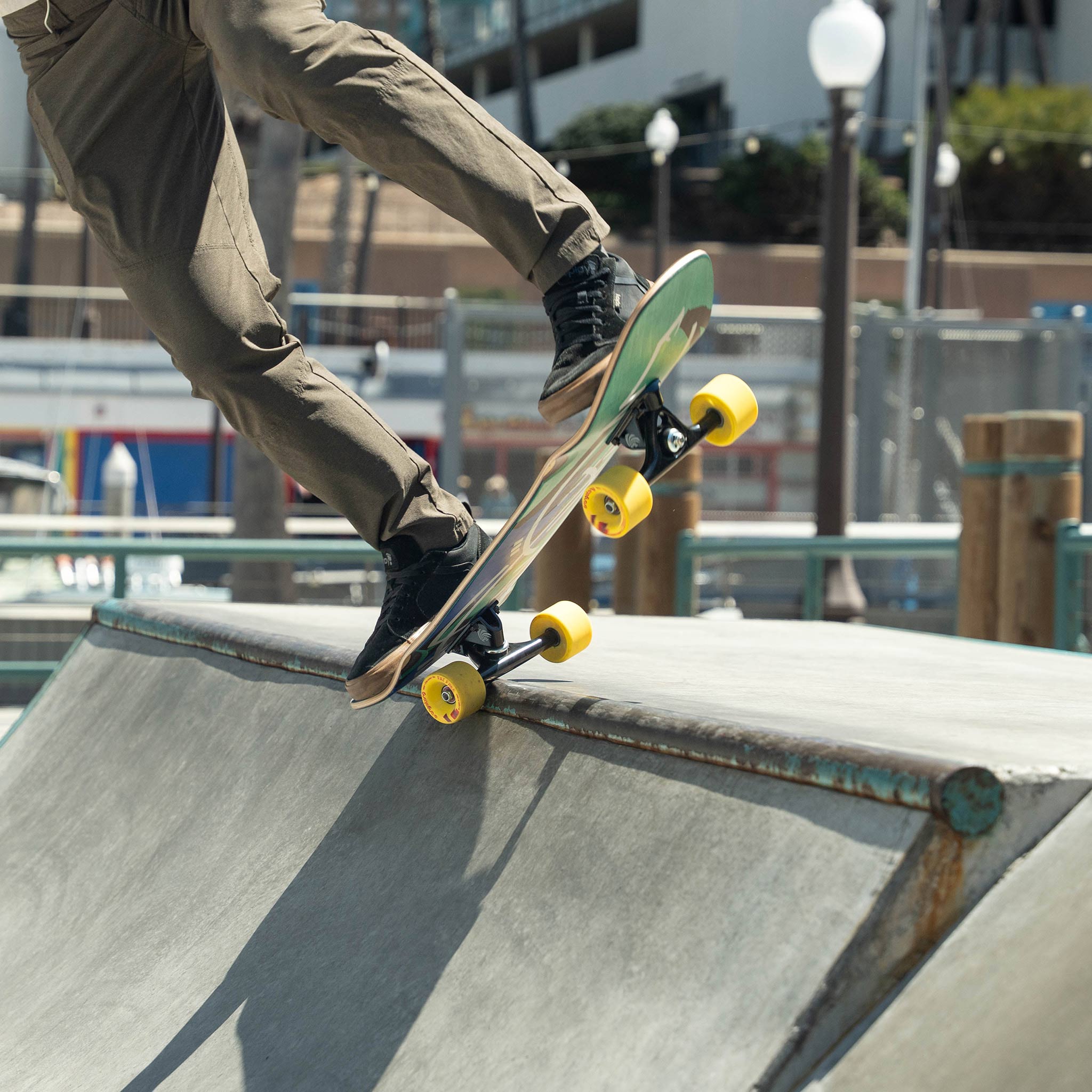 The Bolsa II offers a balance of performance and versatility, featuring a refined shape designed to work with street, longboard, and surfskate setups across pumptracks, skateparks, and city streets. Its generous width, subtle rocker, and mellow concave provide a comfortable, controlled ride, while functional kicktails offer superior pop for ollies and trickery. Mellow wheel flares provide reference points for your feet along with ample wheel clearance, which is further enhanced by milled wheel wells.