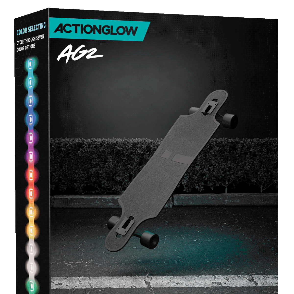 The ActionGlow2 Longboard System was designed to work with ANY longboard or skateboard. You asked, and we listened.. Now introducing color changing mode. Easily switch through 7 colors with our one-button operation. We have also included the ability to cycle through 3 different brightness levels.